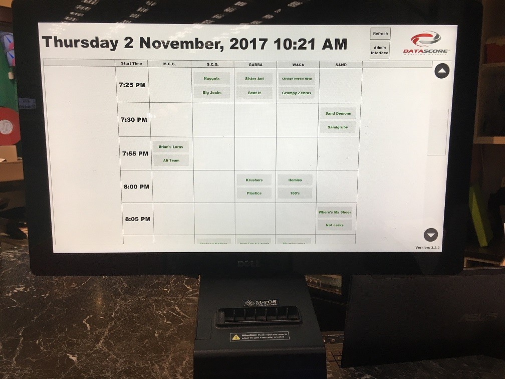 An interactive station is usually set up on, or near your front counter, but can be placed at a location of your choosing, for captains to check in their teams before each match.
