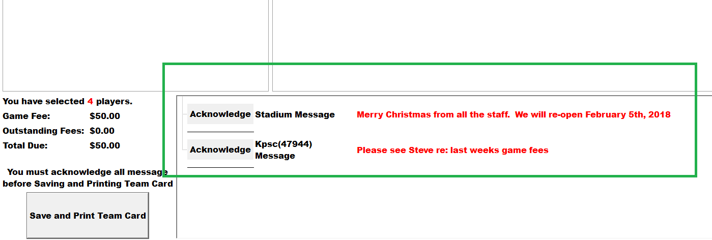 Important announcements and messages can be entered into FiXi, targeting players in a specific sport, team or entire customer base.