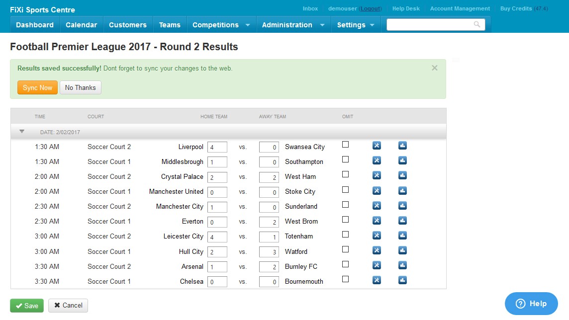 Individual player statistics (for indoor cricket and soccer) can also be entered into the system allowing each player to access a detailed report of their individual performance in addition to their team report.