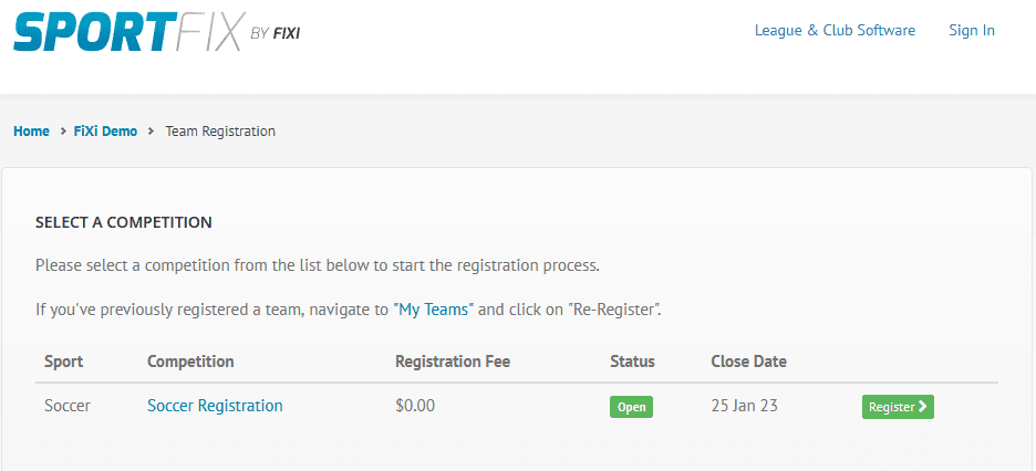 “Please select a competition from the list below to start the registration process.”