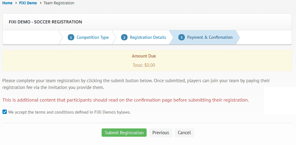Team Registration – Confirmation Content