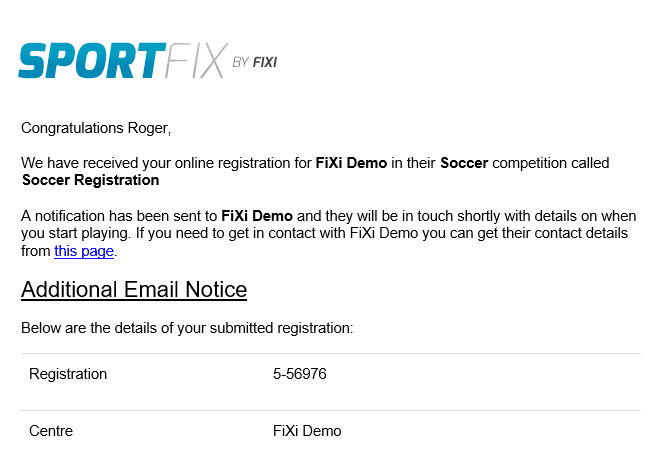 Team Registration – Email Notice