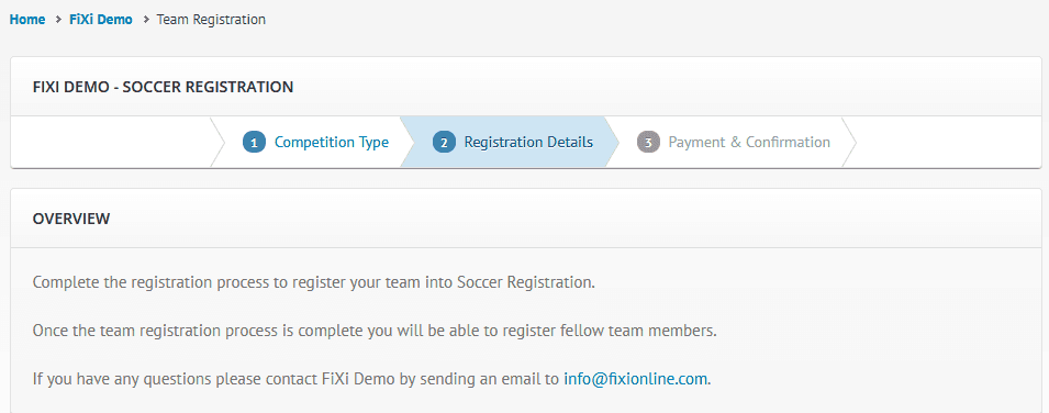 Team Registration – Overview Content