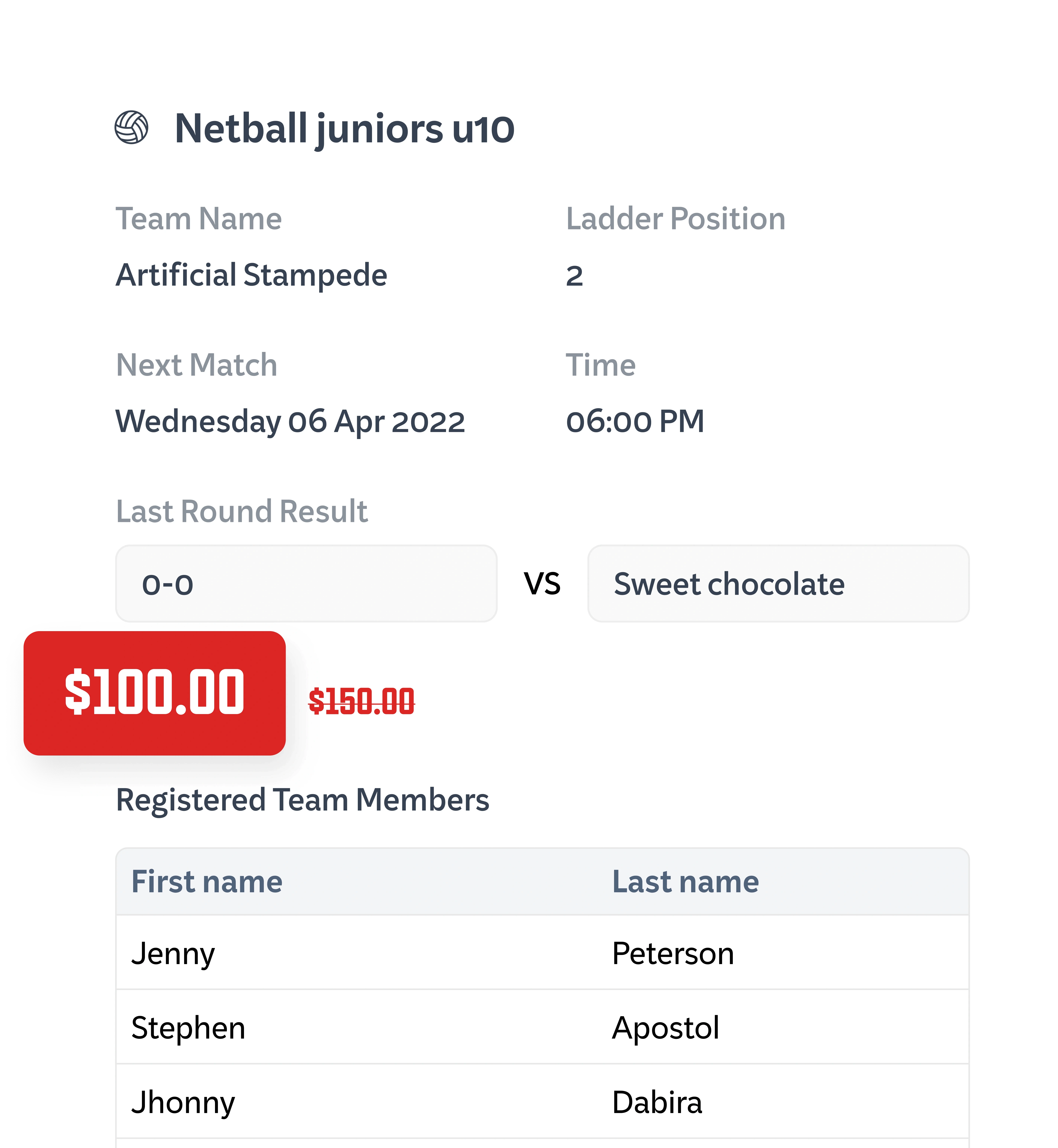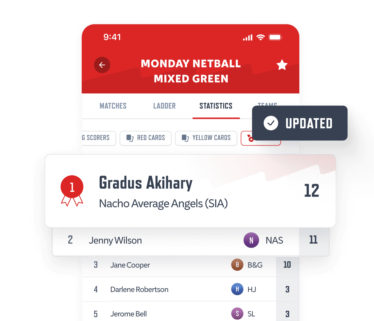 Players see fixtures, ladders, and stats instantly on their phone.