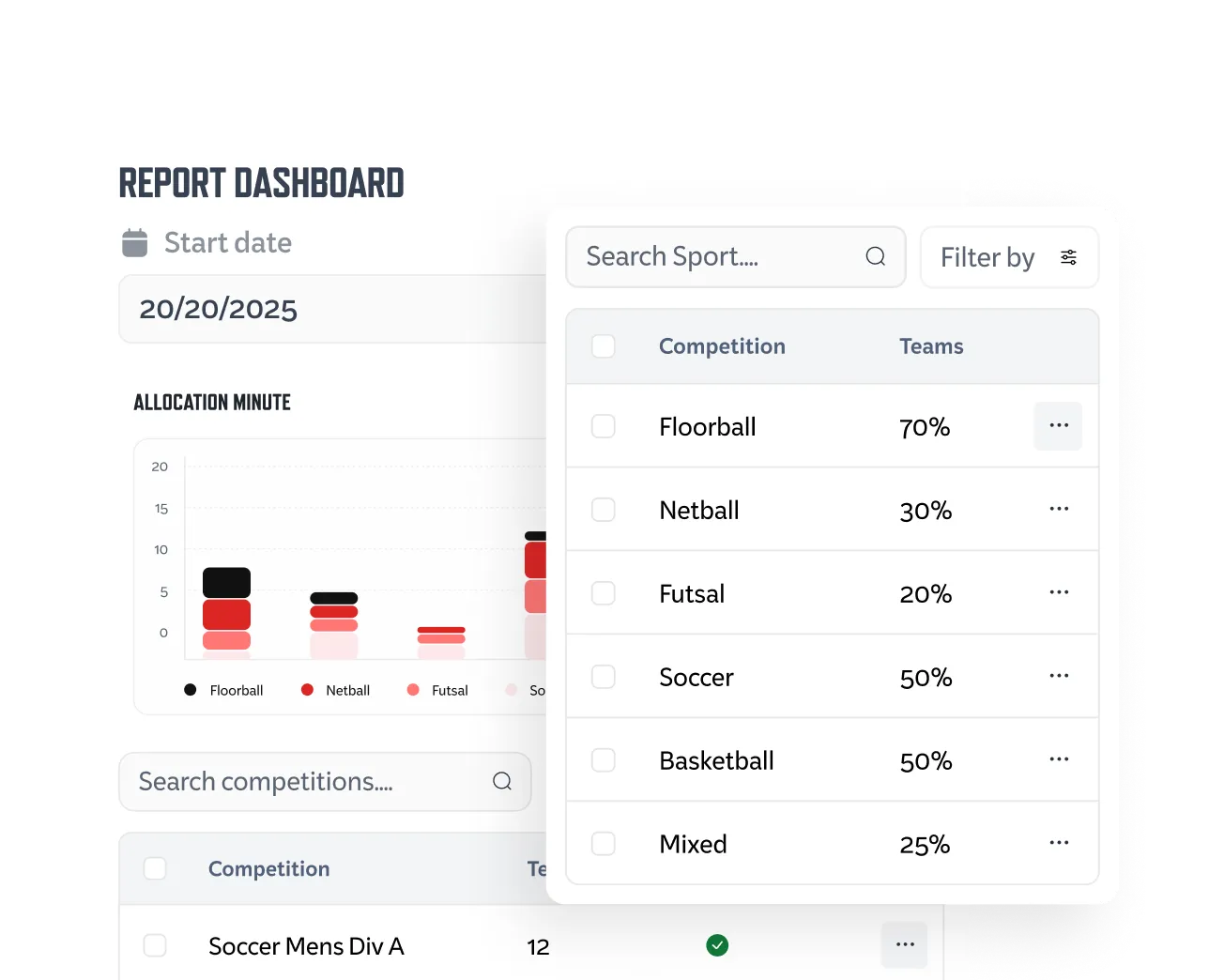 Everything you need to manage competitions, teams, players, registrations and payments — with clear insights and reporting.